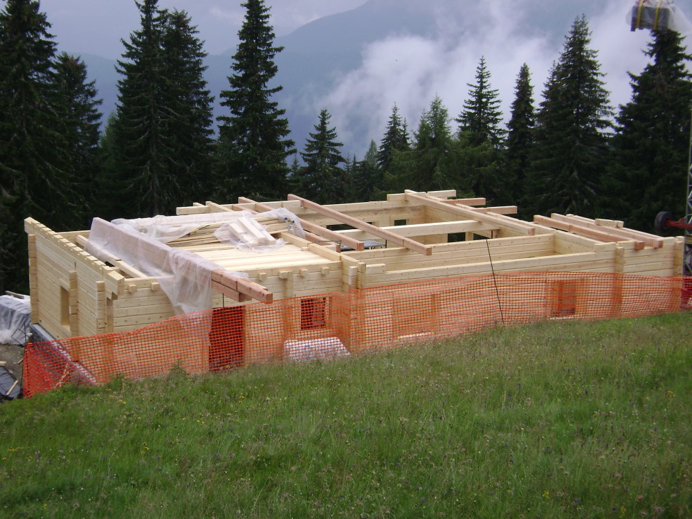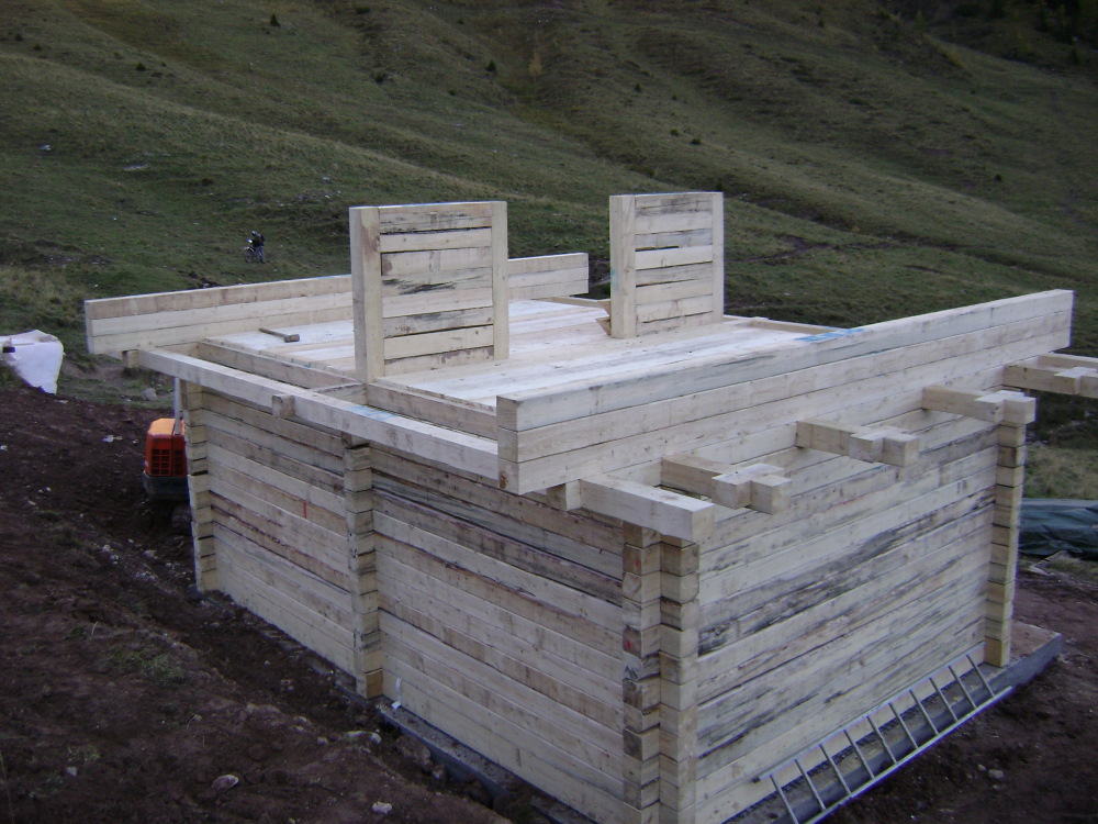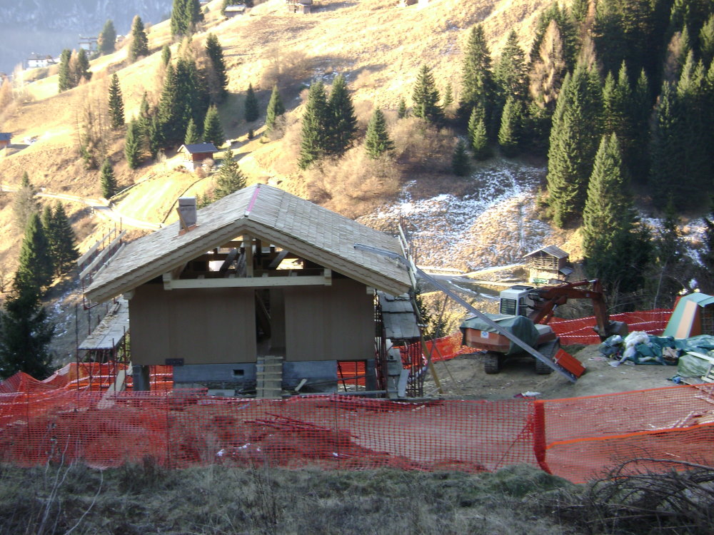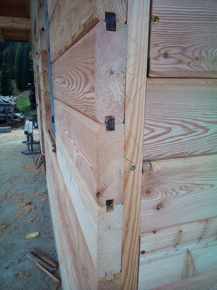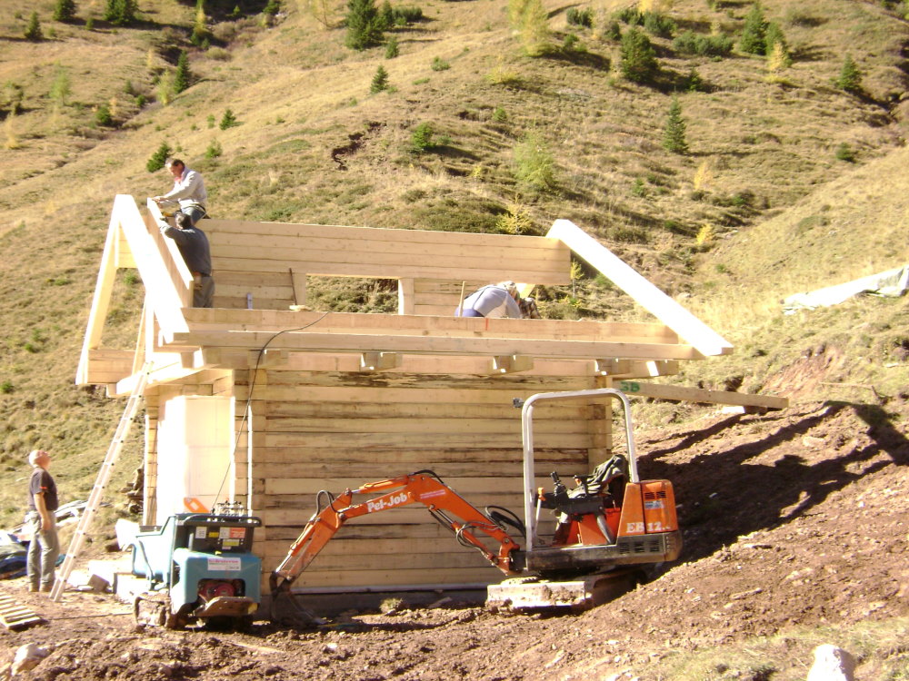 L’intervento di ristrutturazione è avvenuto nel totale rispetto dell’architettura preesistente, smontando ogni singolo elemento – alcuni rimossi per ripristinare la verticalità originaria – per poi rimontarli dopo aver messo a piombo tutta la struttura. Il progetto è stato finalizzato a mantenere la composizione originaria sia nella struttura che nelle finiture, quali chiodature, cerniere ed elementi di fissaggio in legno. Il recupero e ripristino dei materiali fanno del legno il vero protagonista in tutte le sue possibili combinazioni: come il larice, scuro nelle sue facciate più esposte a sud e grigio in quelle meno esposte al sole.