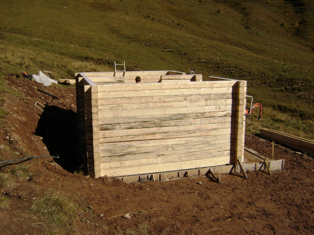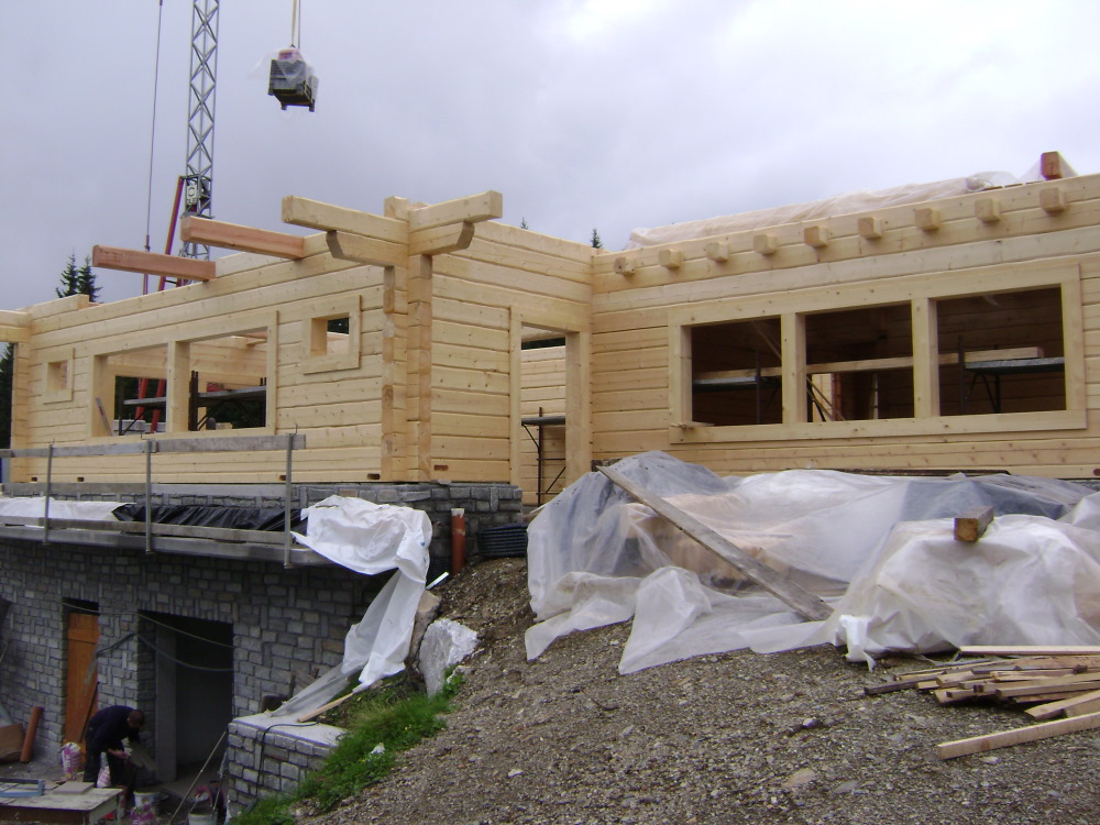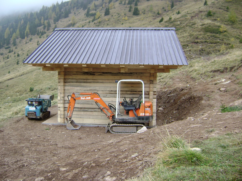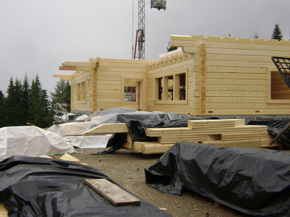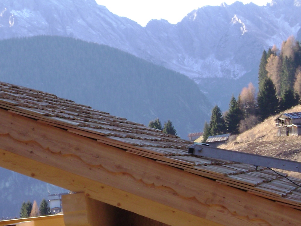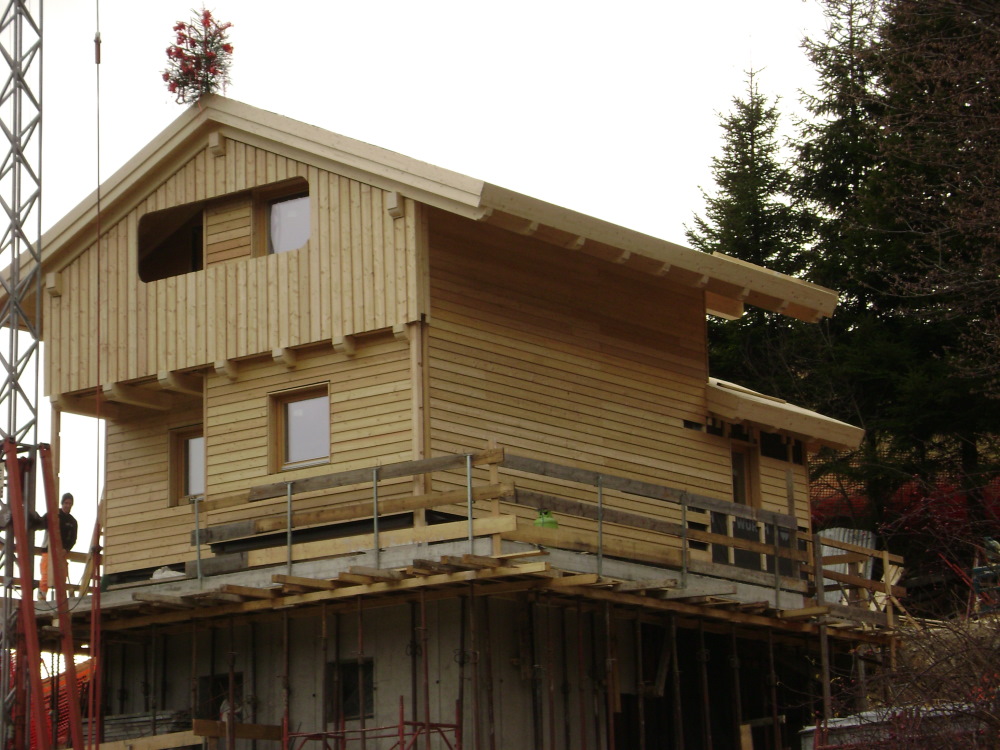 L’intervento di ristrutturazione è avvenuto nel totale rispetto dell’architettura preesistente, smontando ogni singolo elemento – alcuni rimossi per ripristinare la verticalità originaria – per poi rimontarli dopo aver messo a piombo tutta la struttura. Il progetto è stato finalizzato a mantenere la composizione originaria sia nella struttura che nelle finiture, quali chiodature, cerniere ed elementi di fissaggio in legno. Il recupero e ripristino dei materiali fanno del legno il vero protagonista in tutte le sue possibili combinazioni: come il larice, scuro nelle sue facciate più esposte a sud e grigio in quelle meno esposte al sole.