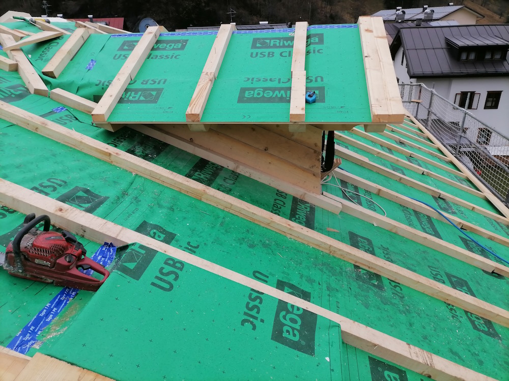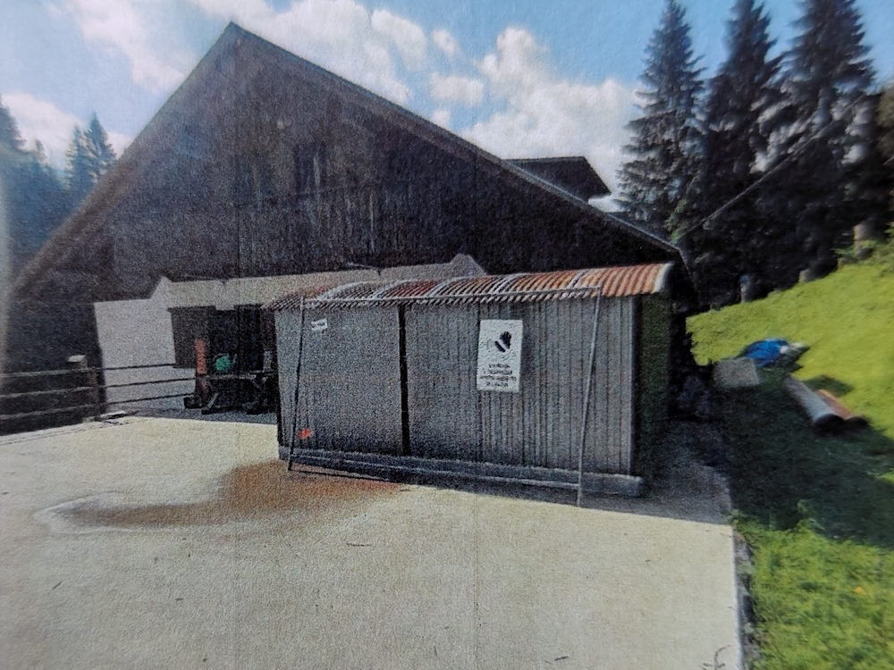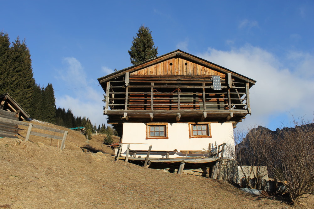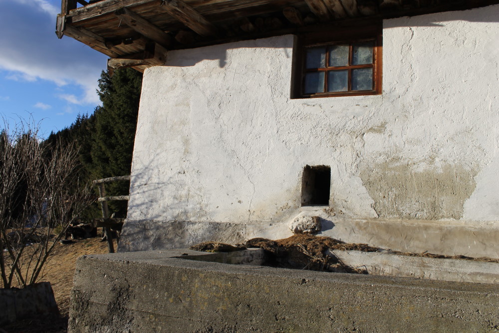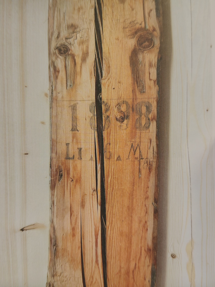 Una delle peculiarità dei fienili era quella di riportare nella trave di colmo la data di costruzione, che in questo caso risale al 1898. Molto spesso gli elementi utilizzati per la costruzione provenivano da altri fienili costruiti in passato, che potevano essere smontati per ricostruirne altri in luoghi diversi. Questo era reso possibile dal sistema costruttivo detto block-bau; quindi, solitamente le travi utilizzate erano antecedenti alla data riportata nel colmo.
