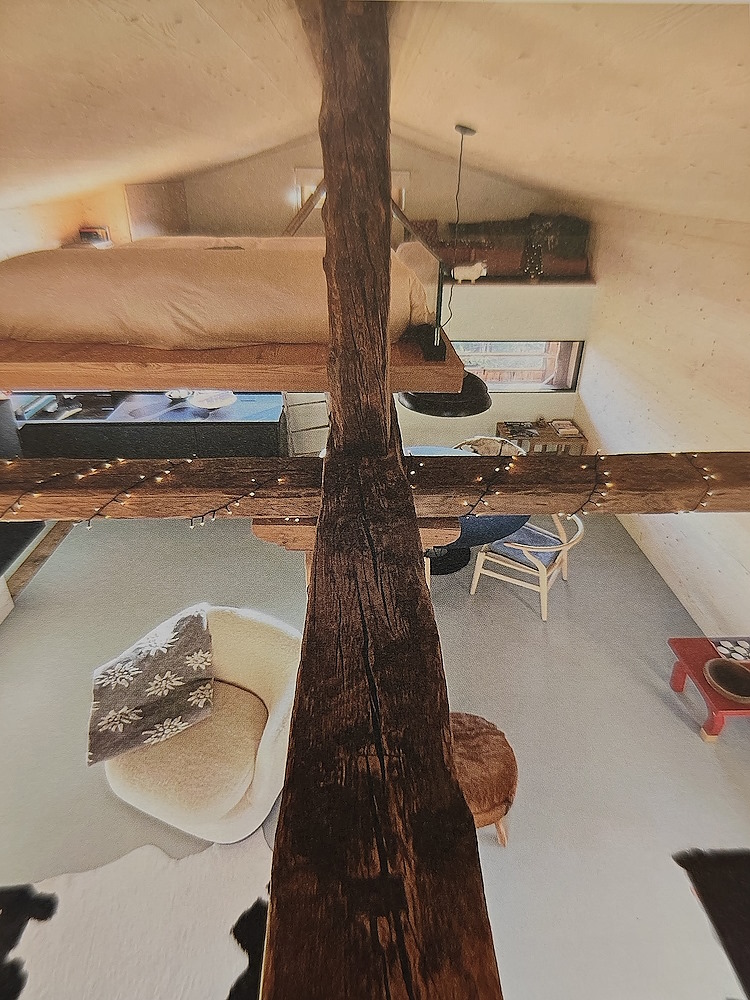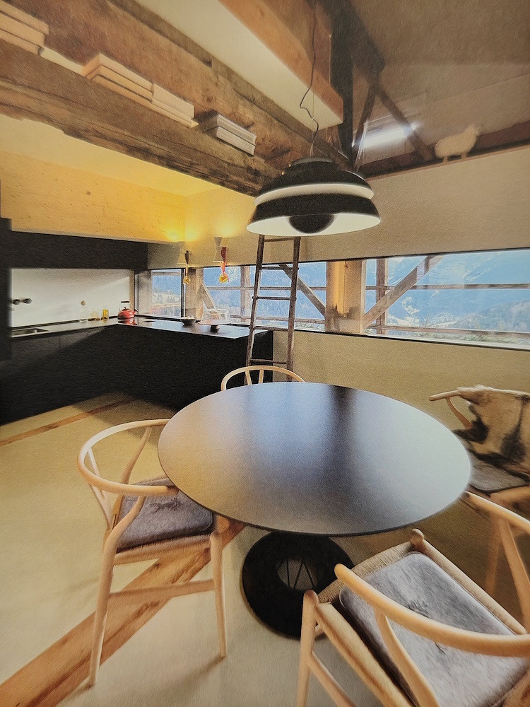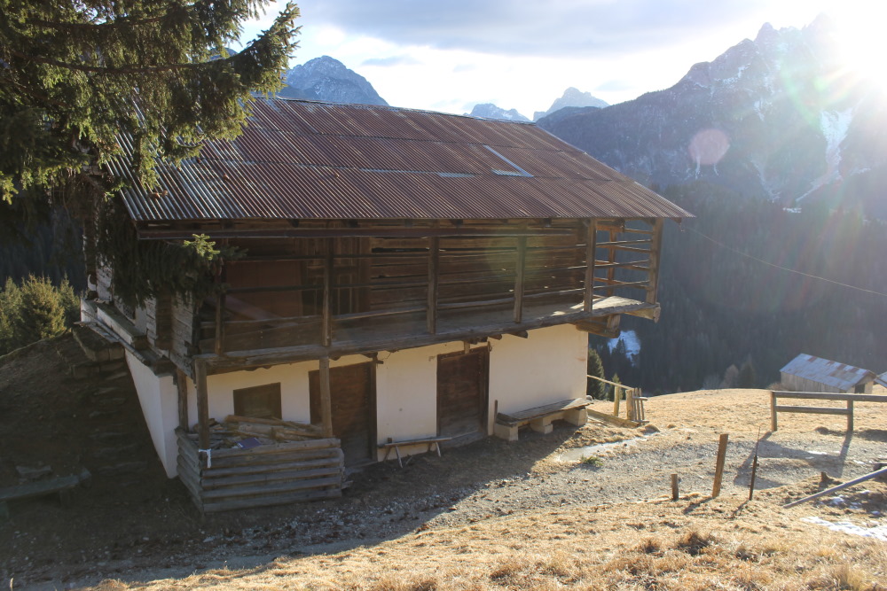 In Veneto, a pochi km da Cortina, immerso tra le Dolomiti al confine con l’Austria, è stato ristrutturato un tipico fienile in legno, nel dialetto locale tabià, utilizzato in passato come deposito per il fieno nella parte superiore, e rifugio per il bestiame in quella inferiore, fornito di un terrazzo, detto “poggiolo”, utilizzato per essiccare il fieno.