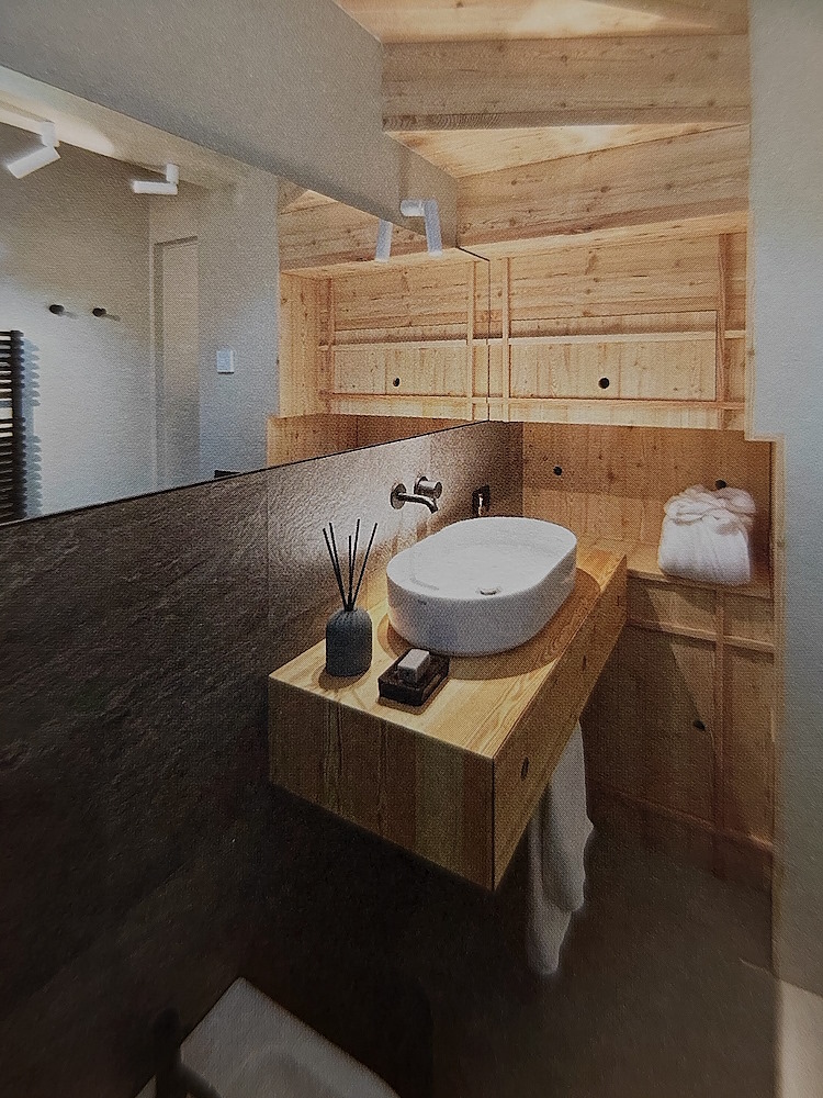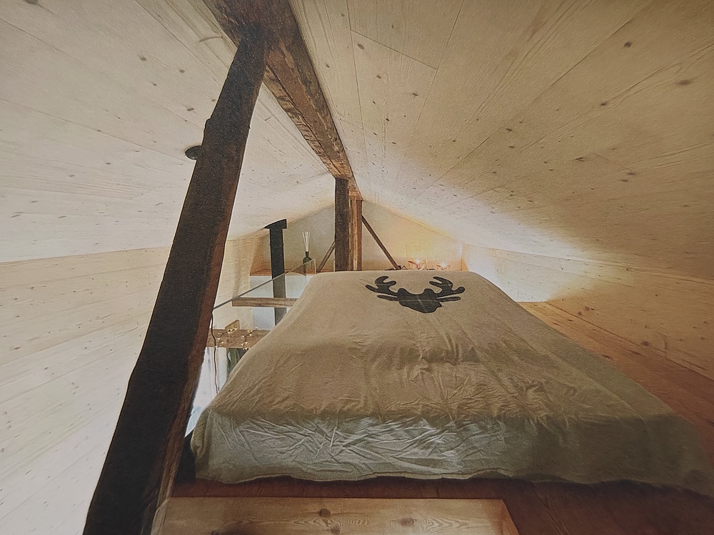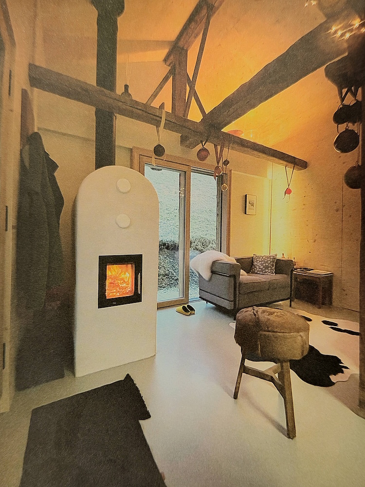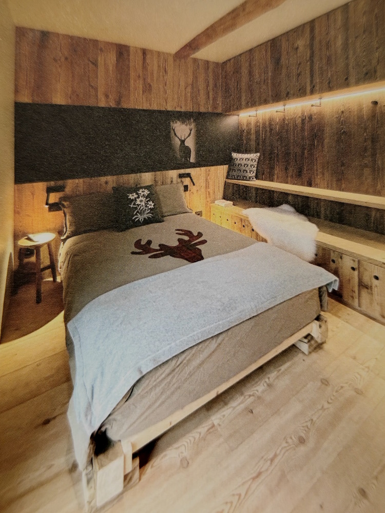 In contrapposizione troviamo all’interno un legno chiaro in abete nelle pareti e in larice nei pavimenti, che danno spazio a una contemporaneità ritrovata come la resina per pavimentazioni dell’area giorno e nei bagni. L’effetto finale è quello di una lanterna, con la sue pelle scura all’esterno e chiara nell’interno, posta nei pascoli del Cadore che mira a trovare l’equilibrio tra sostenibilità e design utilizzando il legno come filo conduttore. L’antico edificio è così tornato alla luce, mantenendo la sua texture originaria, tanto che anche oggi, a un primo sguardo, sembra essersi fermato a un tempo passato.